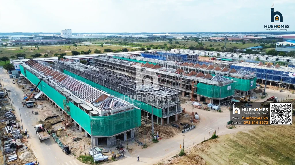 - Các block shophouse được xây dựng đồng loạt, bố cục rõ ràng