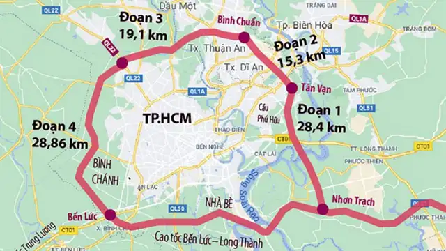 Ngoài ra, đoạn Mỹ Phước – Tân Vạn dài 15,3 km, hiện đang khai thác với quy mô 6 làn xe đô thị, cũng nằm trong trục kết nối của tuyến vành đai này.